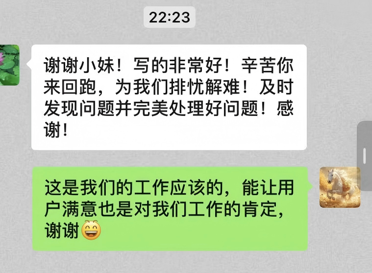 這位用戶表示,要將隨州水務(wù)員工的專業(yè)與熱情分享給身邊人,直言“你們工作時(shí)熱情的態(tài)度值得我們學(xué)習(xí)”。面對用戶的盛贊,網(wǎng)格員一句“你再表揚(yáng)我就要飄了”的俏皮回應(yīng),讓這場服務(wù)與被服務(wù)的互動(dòng)更添溫情。